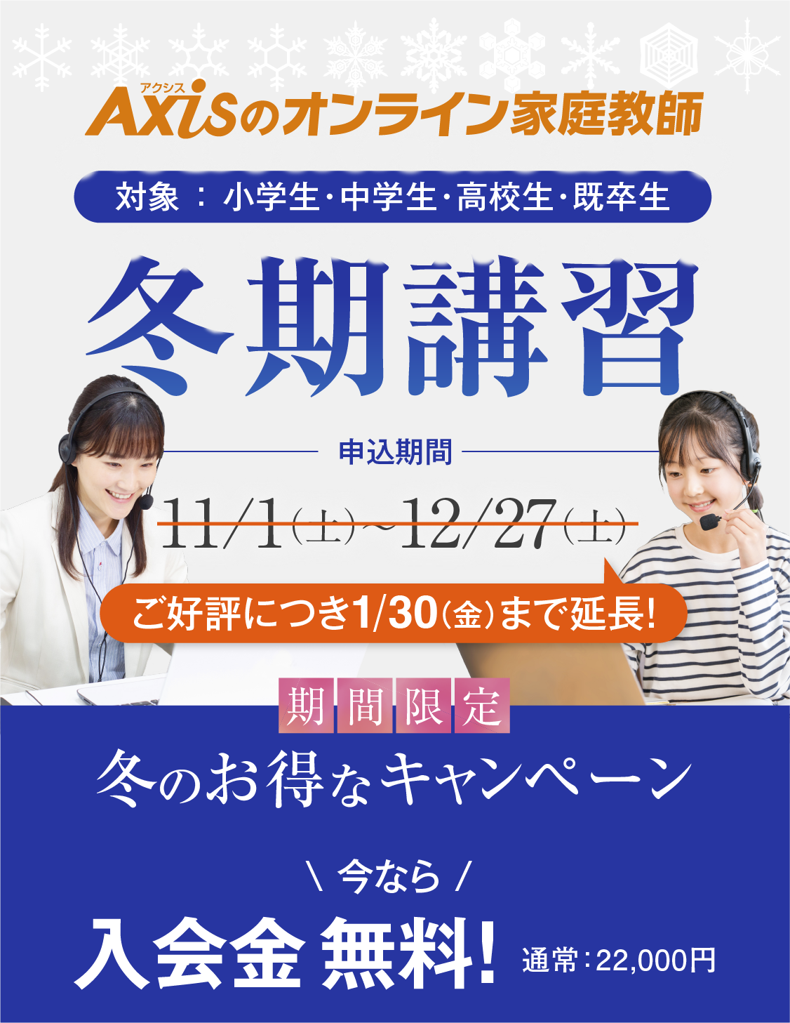 - 【お知らせ】大変お得な冬期講習<ご好評につき1月30日まで延長>